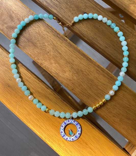 Naturstein Halskette mit orientalischem Anhänger & Vogelmotiv | Handgefertigt aus Edelstahl