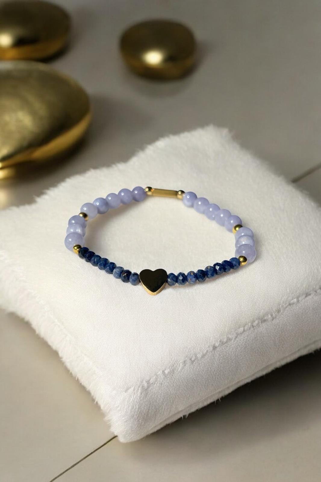 Blaues Naturstein-Armband mit Herz-Anhänger | Damen Schmuck aus Edelstahl