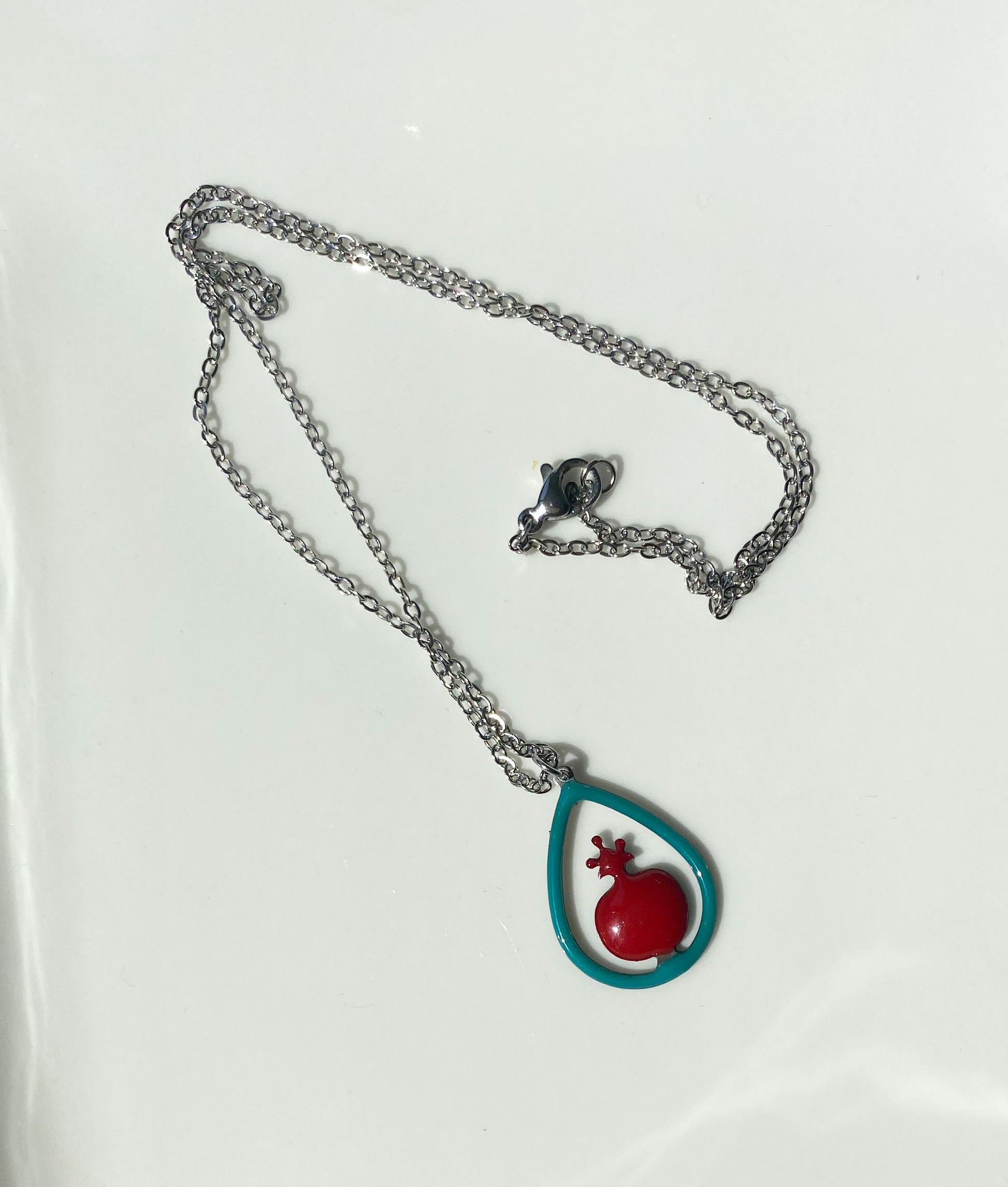 Kette mit Granatapfel-Anhänger – Handgefertigt mit Emaille in Türkis & Rot